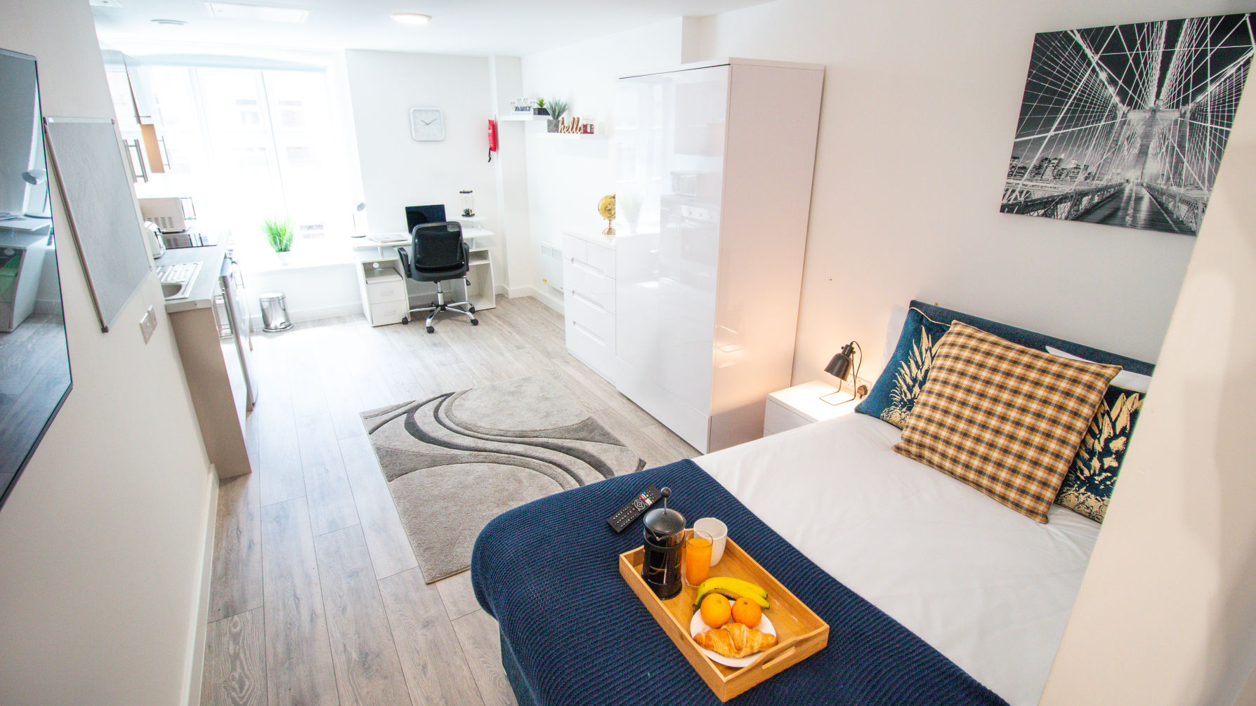 This student studio apartment is the ultimate in indulgence. You'll enjoy between 35sqm of luxury living. And every detail is taken care of, from the wooden floor to the plush furnishings and spacious ensuite with heated towel rail.